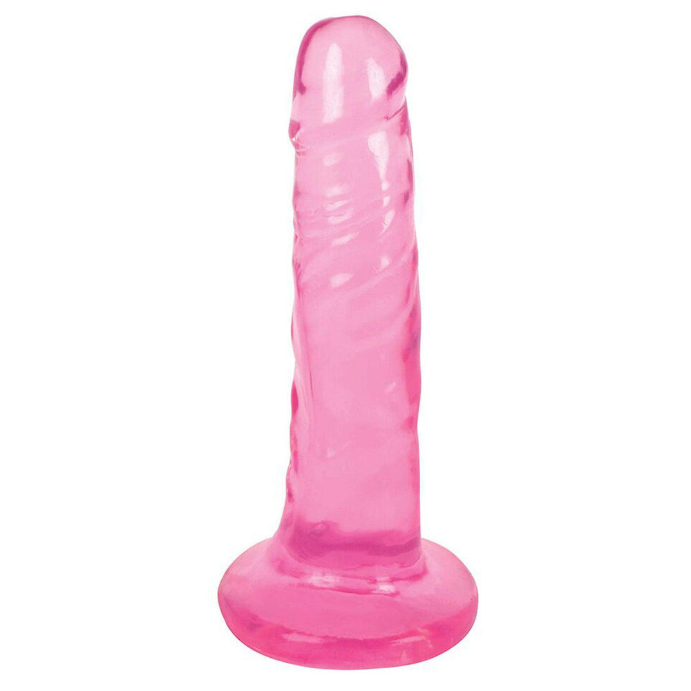 Super slim and sure to please! This crystalline dildo has a lifelike look, crafted out of translucent phthalate-and-latex free PVC for a nice firm ride. The solid suction cup at the base grips any flat surface, with just enough length and girth to fill you up and leave you completely satisfied! The slick and firm material is easy to clean. A quality toy that is the perfect sweet treat made with material from the USA.
