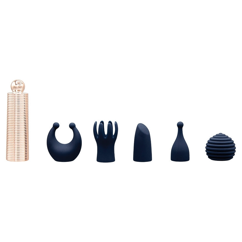 Lipstick (angled, smooth coverage), Pinpoint (precision ball tip), Dual Pinpoint (two tips for targeted nipple or spot play), Grooved Orb (ridged waves), and Tickler (8 soft fingers for teasing).
