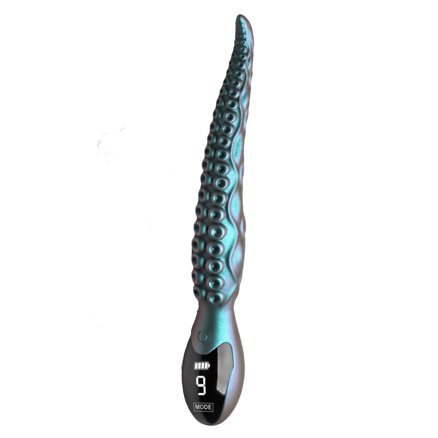 Dive deep into decadence with the Tentavibe Tentacle Vibrator, where sea creature kink meets high-tech power. This thick, bendy tentacle is textured with over 45 detailed suckers and glistens in a seductive, metallic teal. With 3 vibration speeds and 6 wicked patterns, you’ll feel every pulse and throb in your core. The digital screen at the base keeps you in control of the power, the pattern, and your battery life. It’s flexible, phthalate-free, USB rechargeable, and splashproof — all wrapped into a fantasy experience that's ready to drag you under and never let go.