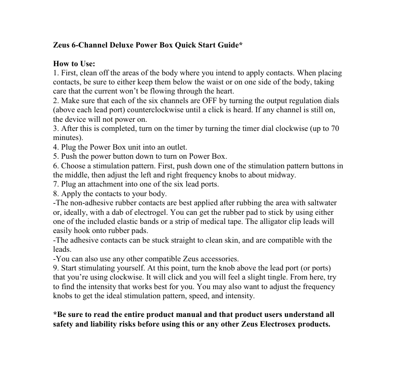 FAQs — Zeus 6 Channel Deluxe Electrosex Power Box